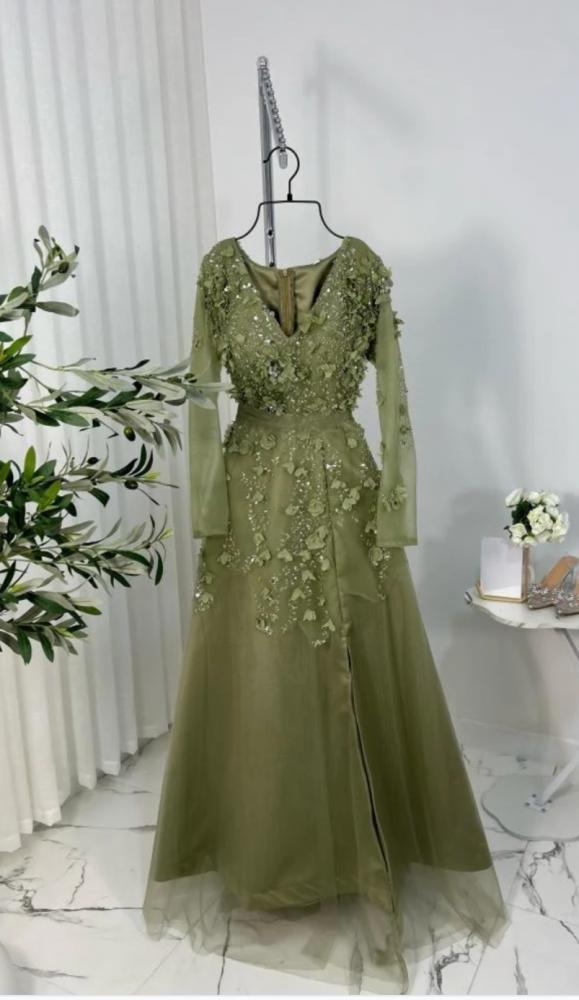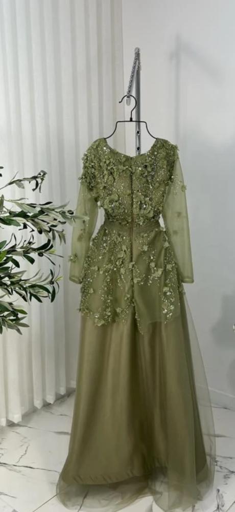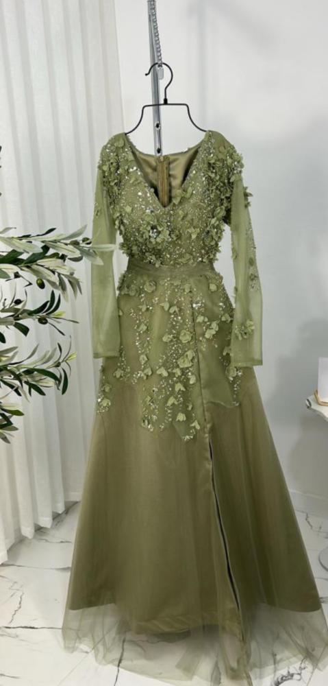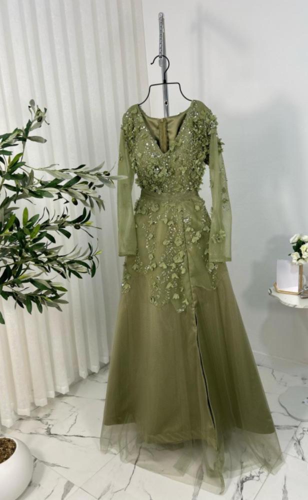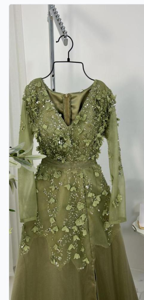 فستان سهرة للحمل – أخضر مورد بتطريز ناعم رقم المنتج: 01030