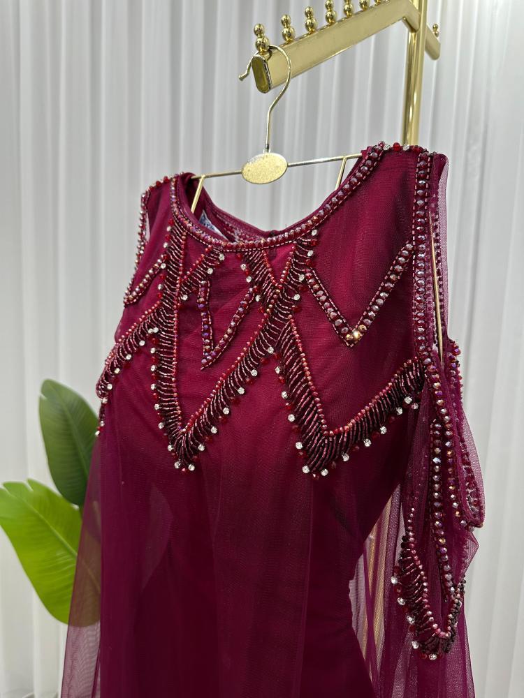 - تنظيف جاف للحفاظ على التفاصيل المطرزة