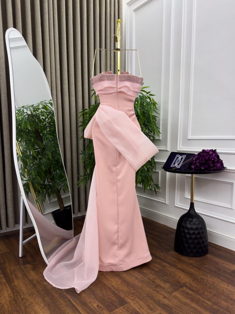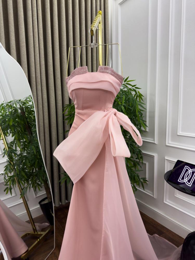فستان سهرة وردي توب مع ربطة جانبية – خامة باربي رقم المنتج: 0146