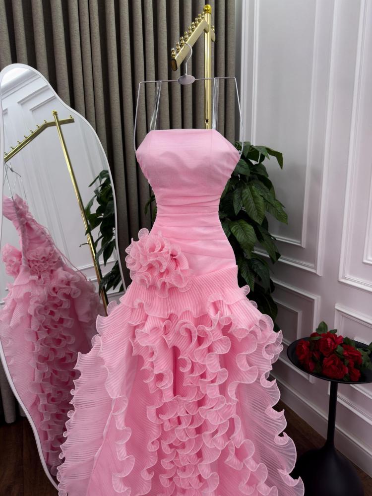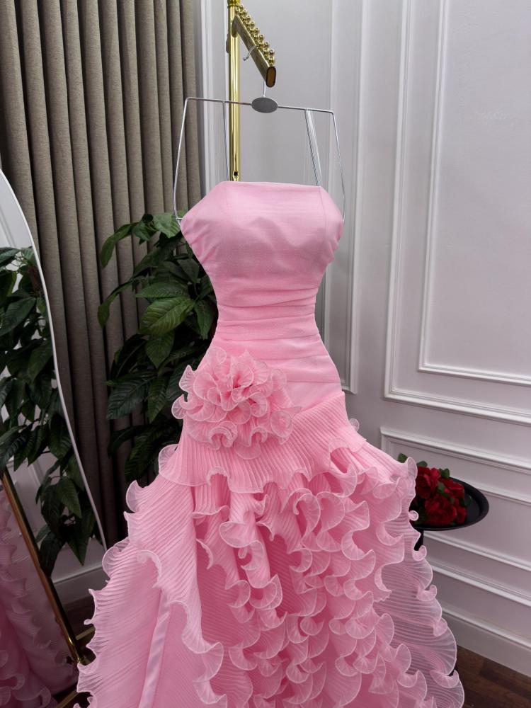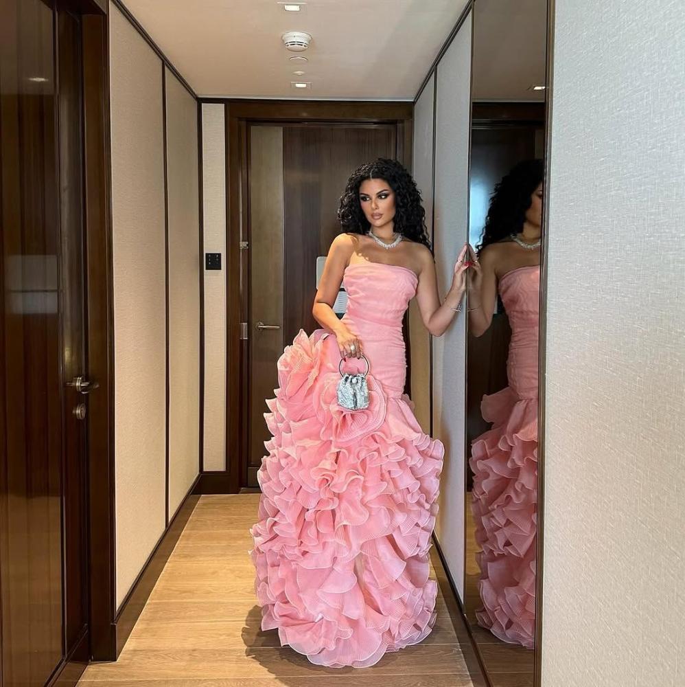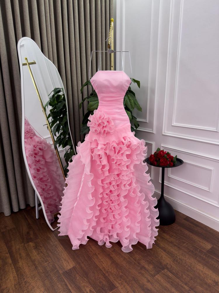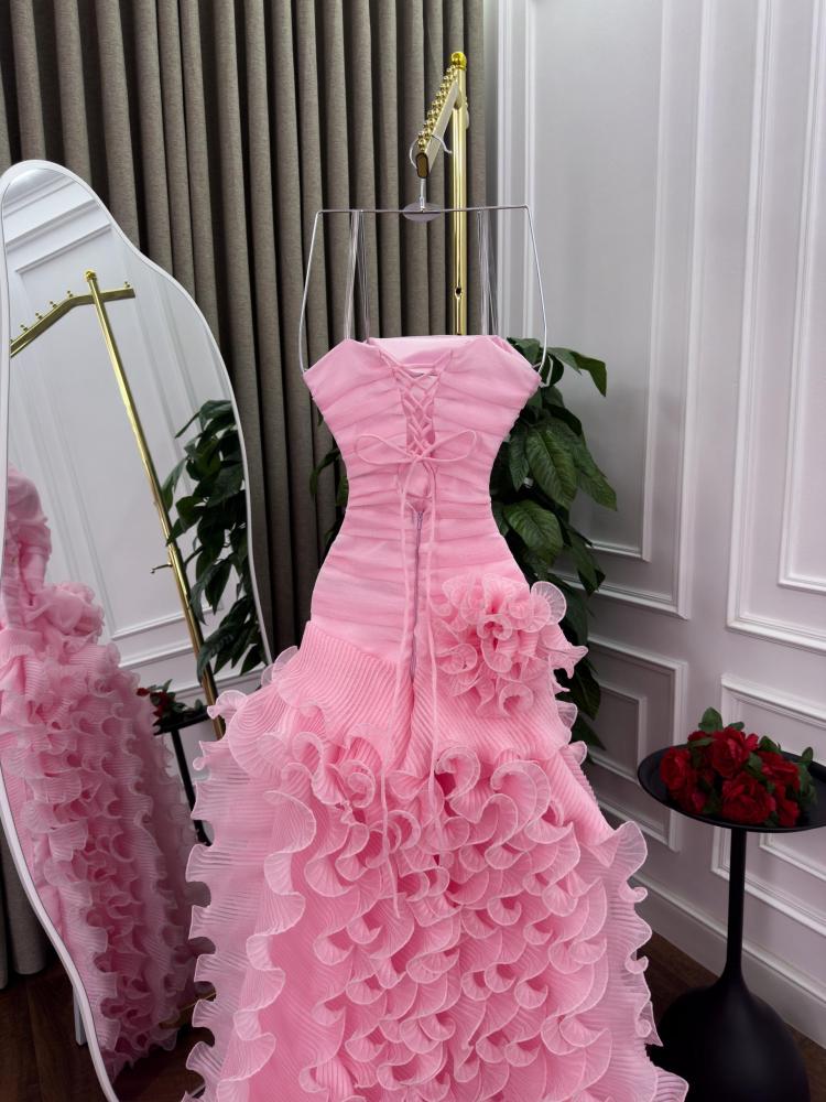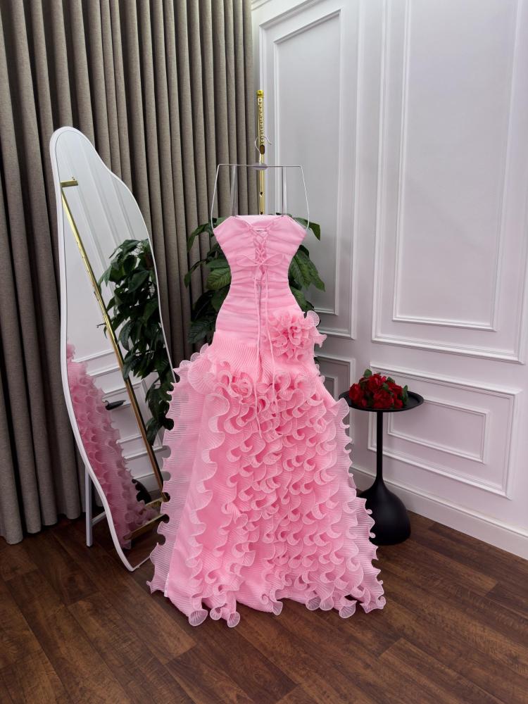 فستان سهرة وردي مكرمش يعكس قمة الأناقة والفخامة 0209