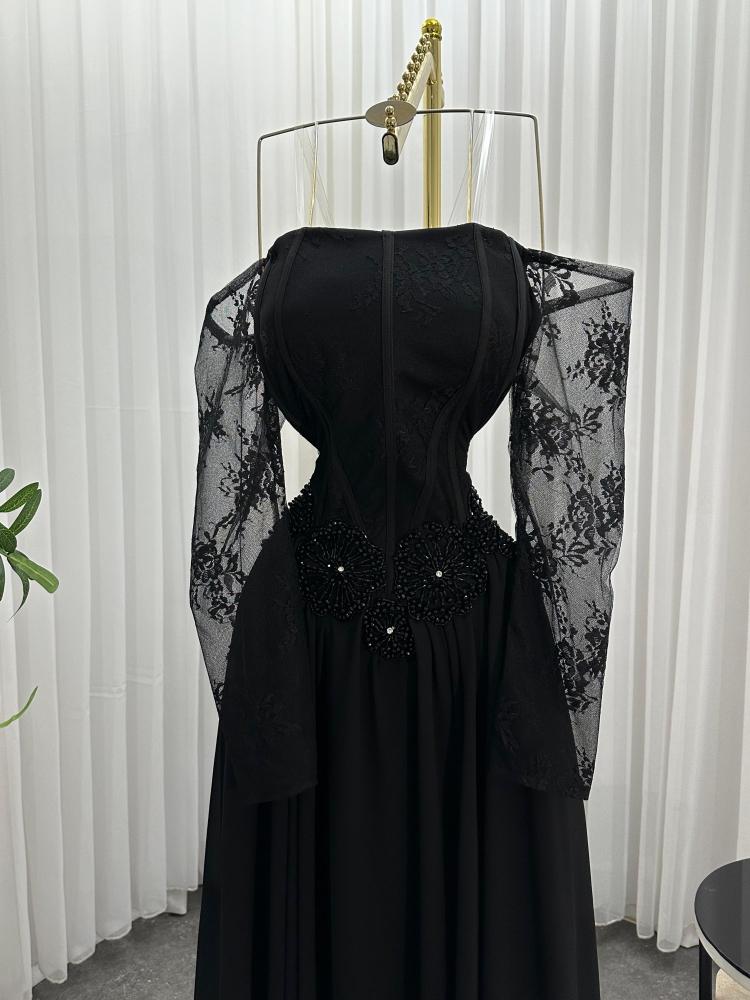 تميزي في مناسباتك الخاصة مع هذا الفستان الساحر بلونه الزيتي الجذاب وتطريزه اليدوي المتقن بالخرز اللامع الذي يضيف لمسة فخامة فريدة.