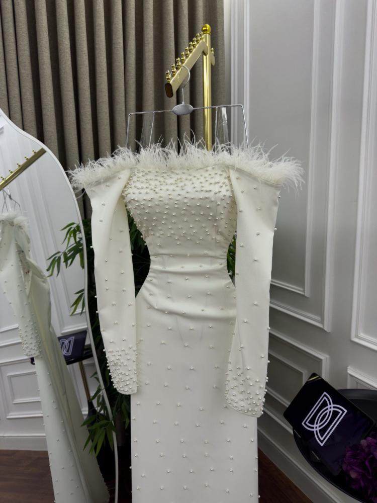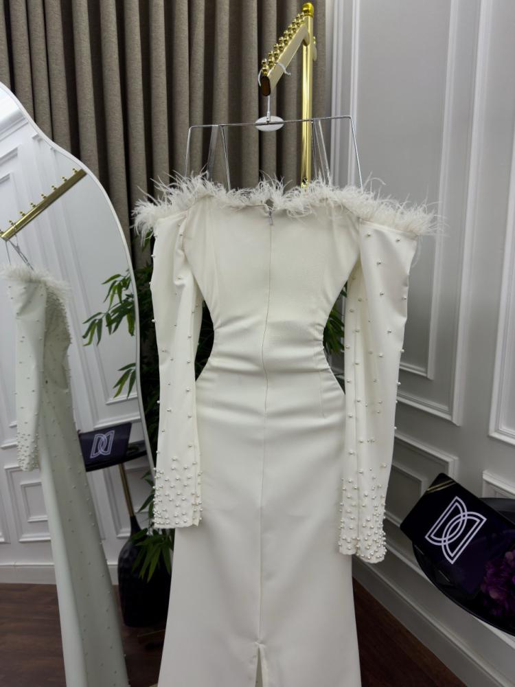 الخامة ناعمة وانسيابية، مناسبة للأجواء الدافئة، مع قصّة مستقيمة بطول فوق الركبة تبرز الجمال بأسلوب غير متكلّف.