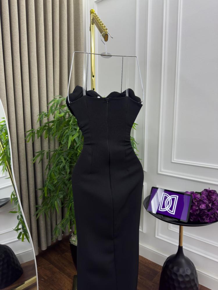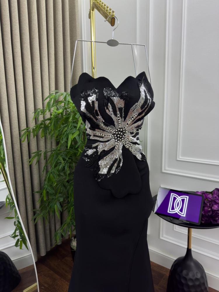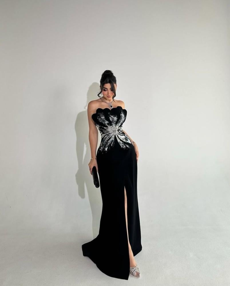 فستان سهرة أسود فاخر بخامة باربي فخمة 0187،