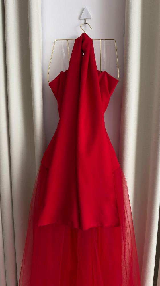 فستان سهرة ناعم من قماش التل والباربي بتصميم أنيق يخطف الأنظار