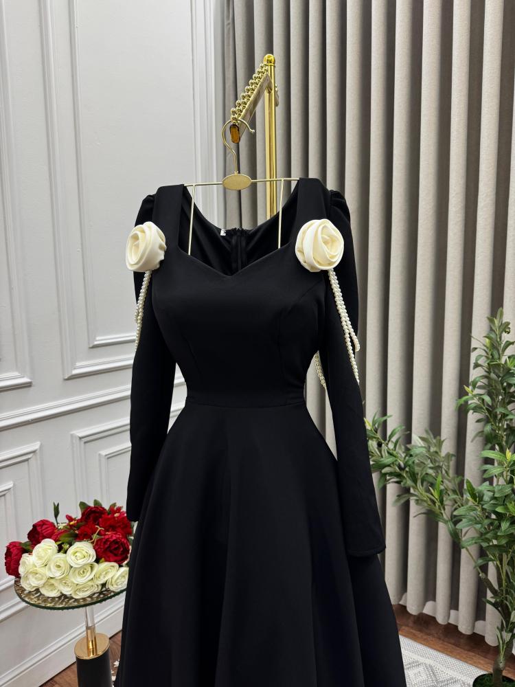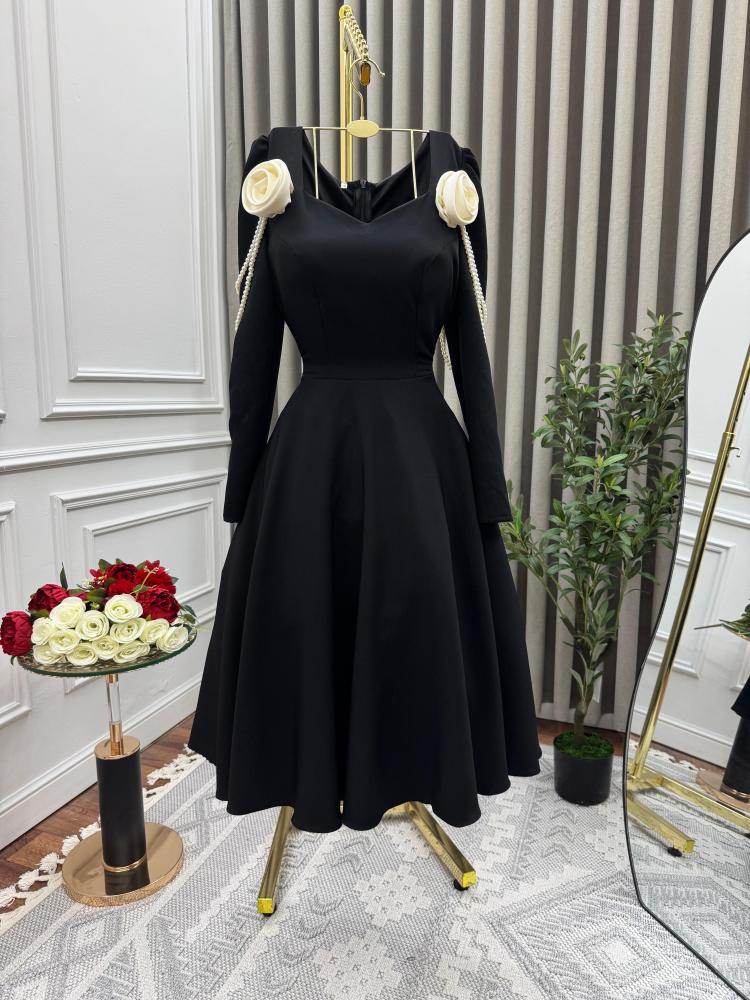 فستان سهرة فاخر مستوحى من نعومة الورود وجمال تفاصيلها، بتصميم كلوش واسع يمنحك حضورًا ملكيًا مع كل خطوة.