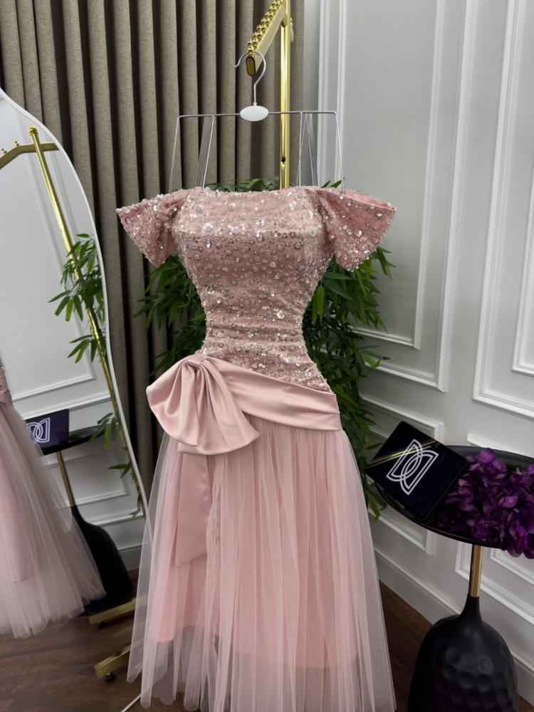 تألقي بأناقة تخطف الأنفاس مع فستان السهرة الميدي المصمم بعناية ليجمع بين الرقي والأنوثة اللافتة. يتميز بقصة ميدي ناعمة تنسدل بانسيابية على الجسم، وفيونكة بارزة مغطاة بالترتر اللامع تضيف لمسة فخمة ومفعمة بالحيوية.