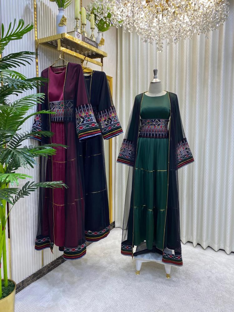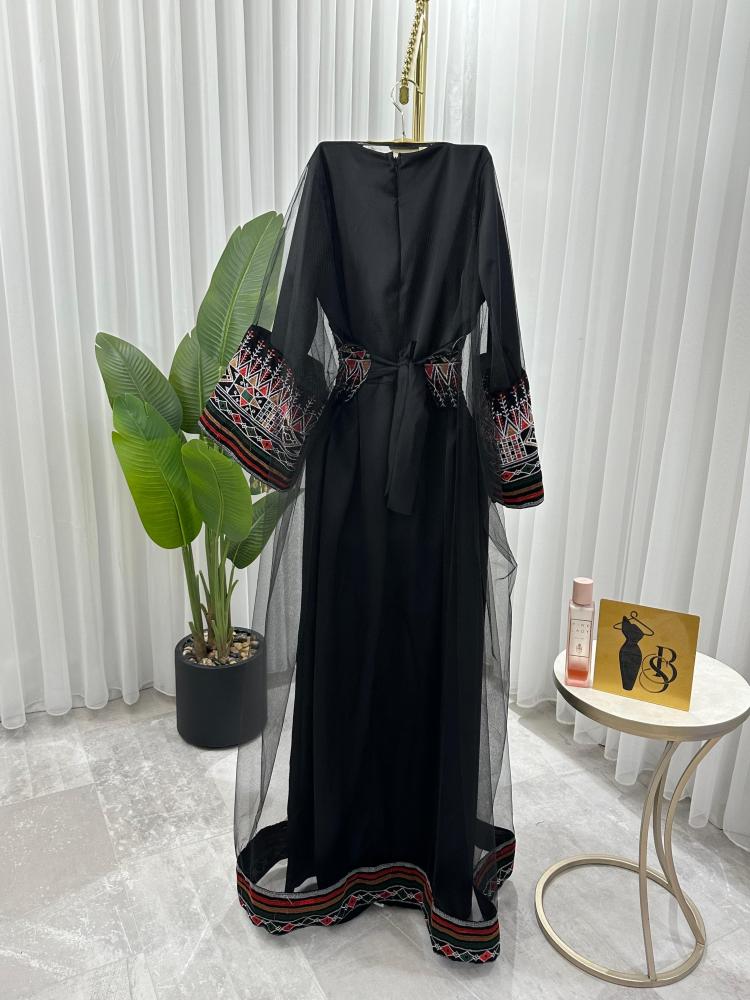 • القطعة الخارجية: جلابية مفتوحة بتطريز كمبيوتر دقيق