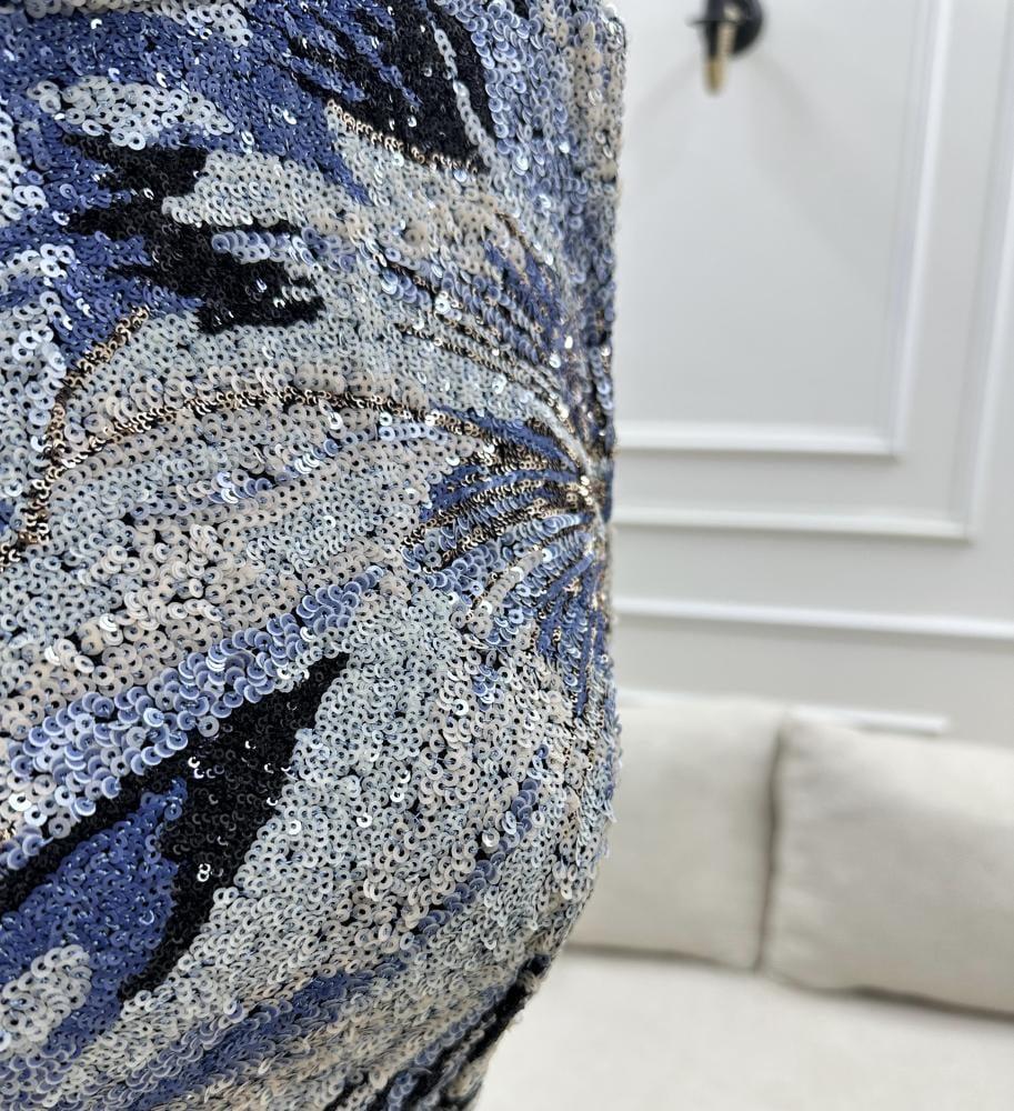 مصنوع من خامة شك مطرزة بالكامل تضيف لمسة من اللمعان الفاخر والتفاصيل الراقية، ويمنحك مظهر متكامل للسهرات والمناسبات الخاصة.