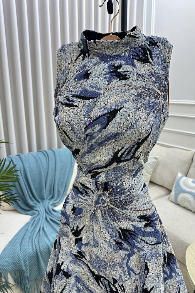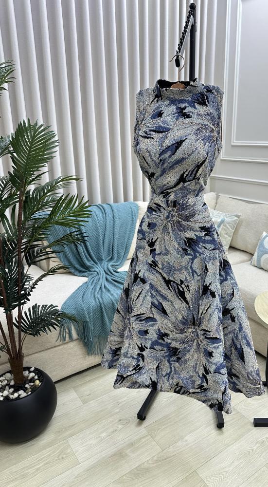 فستان ازرق جذاب بتصميم بدون أكمام يعكس أنوثتك بثقة وأناقة.